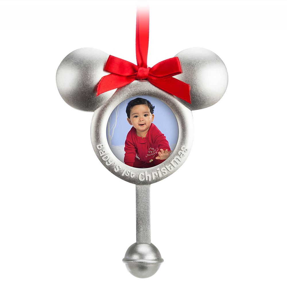 Personalized Mickey Babys First Disney Christmas Photo Holder Disney Christmas Ornament. Celebrate the special gift that is your little one by displaying a 1st Christmas picture in this photo holder ornament shaped like a glittery green present with a big red bow. Skillfully crafted from ceramic this handpainted keepsake displays your little ones name. - 6mm thickness ORDERING INFORMATION - Pick a product you. This sweet Christmas tree ornament featuring a cheerful Baby Mickey Mouse reads Babys First Christmas and includes space to customize by writing in a name or date with a thin marker not included. High-quality ceramic - One-sided design - Dimensions. Hangs from j.